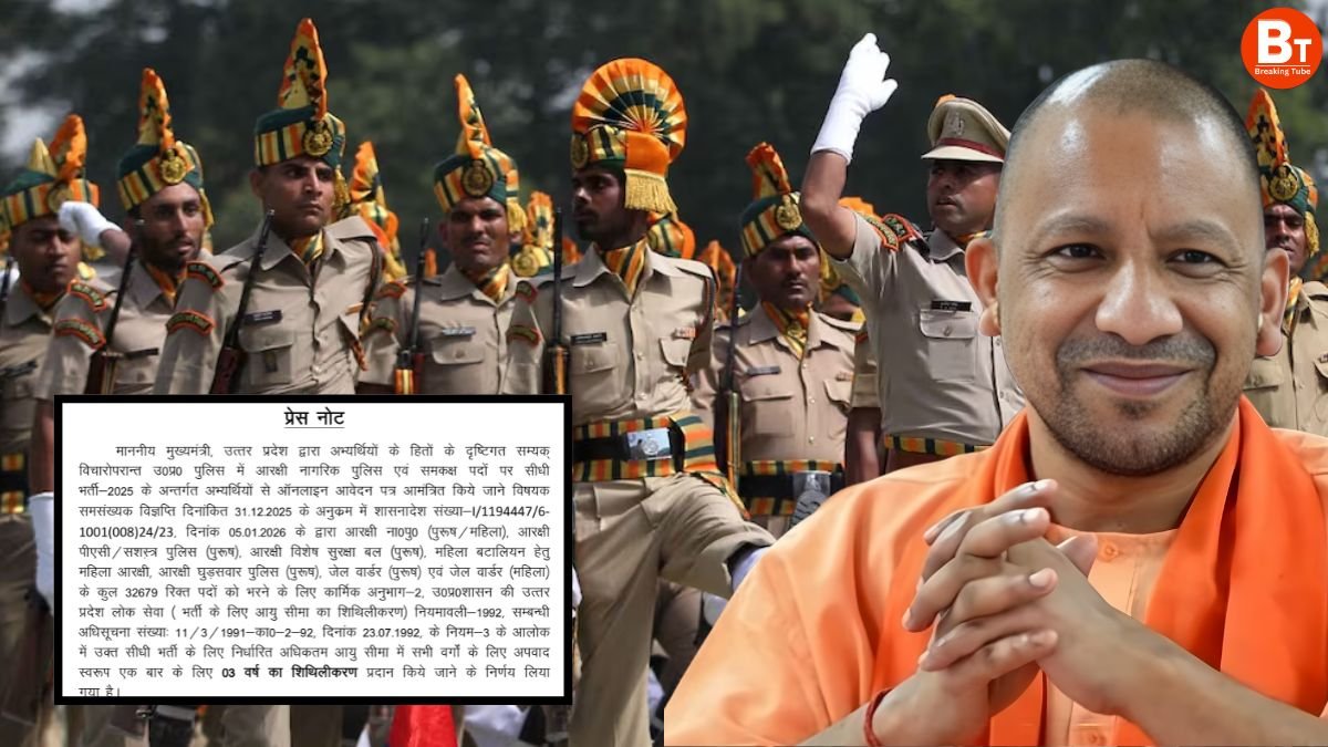 उत्तर प्रदेश सरकार ने अभ्यर्थियों के हितों को ध्यान में रखते हुए उप्र पुलिस में आरक्षी नागरिक पुलिस और समकक्ष पदों पर सीधी भर्ती-2025 के लिए ऑनलाइन आवेदन आमंत्रित करने का निर्णय लिया है। यह निर्णय दिनांक 31.12.2025 की समसंख्यक विज्ञप्ति और शासनादेश संख्या 1/1194447/6-1001(008)24/23, दिनांक 05.01.2026 के अनुसार लिया गया है।भर्ती के लिए कुल 32,679 रिक्त पद हैं, जिनमें आरक्षी ना.पू. (पुरुष/महिला), आरक्षी पीएसी/सशस्त्र पुलिस (पुरुष), आरक्षी विशेष सुरक्षा बल (पुरुष), महिला बटालियन हेतु महिला आरक्षी, आरक्षी घुड़सवार पुलिस (पुरुष), जेल वार्डर (पुरुष) और जेल वार्डर (महिला) शामिल हैं।कार्मिक अनुभाग-2, उप्र प्रशासन के अनुसार, उत्तर प्रदेश लोक सेवा नियमावली-1992 की नियम-3 के तहत सभी वर्गों के लिए निर्धारित अधिकतम आयु सीमा में विशेष रूप से एक बार के लिए 3 वर्ष का शिथिलीकरण प्रदान किया गया है।