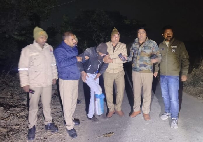 एसपी संदीप कुमार मीना ने बताया कि बुधवार की भोर में करीब 2:30 बजे सूचना मिली कि एक अकेला चोर जो कई चोरी की घटनाओं में शामिल रहा है, वह गोरखपुर की ओर से अजगईबा घाट की तरफ आ रहा है। सूचना पर कोतवाल पंकज कुमार पांडेय, कांटे चौकी इंचार्ज राम वशिष्ठ, नवीन मंडी चौकी इंचार्ज अश्वनी तिवारी, बरदहिया चौकी इंचार्ज अनिल कुमार यादव सहित पुलिस टीम मौके पर पहुंची। टीम को पुल से करीब 50 मीटर पहले एक संदिग्ध युवक अपाची बाइक से आता दिखा। पुलिस ने रोकने का प्रयास किया तो वह अनियंत्रित होकर बाइक समेत गिर पड़ा और अचानक पुलिस टीम पर फायरिंग कर दी। जवाबी कार्रवाई में पुलिस की गोली उसके पैर में लगी, जिसके बाद उसे दबोच लिया गया।