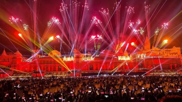 राम की पैड़ी रंग-बिरंगी लाइटों से जगमग हो रही है। मंदिरों की दीवारों पर की गई फसाड लाइटिंग का प्रतिबिंब सरयू नदी में अद्भुत दृश्य प्रस्तुत कर रहा है। धर्म पथ, राम पथ और भक्ति पथ को भी थीम आधारित रोशनी से सजाया जा रहा है।
