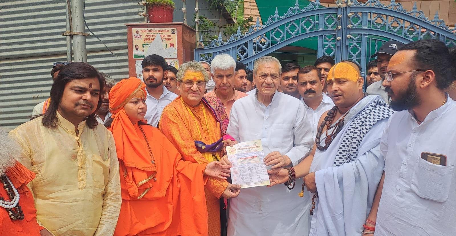 वृंदावन : धर्म रक्षा संघ का एक प्रतिनिधिमंडल, मातृशक्ति की राष्ट्रीय अध्यक्ष महामंडलेश्वर स्वामी ध्यान मूर्ति गिरी महाराज के नेतृत्व में उत्तर प्रदेश के गन्ना विकास मंत्री लक्ष्मी नारायण चौधरी के निवास पर पहुंचा। प्रतिनिधिमंडल ने गौ हत्या पर पूर्ण प्रतिबंध, गौ माता को ‘राष्ट्र माता’ घोषित करने और गाय संरक्षण की मांग को लेकर राष्ट्रपति, प्रधानमंत्री और मुख्यमंत्री को संबोधित ज्ञापन सौंपने की पहल की।