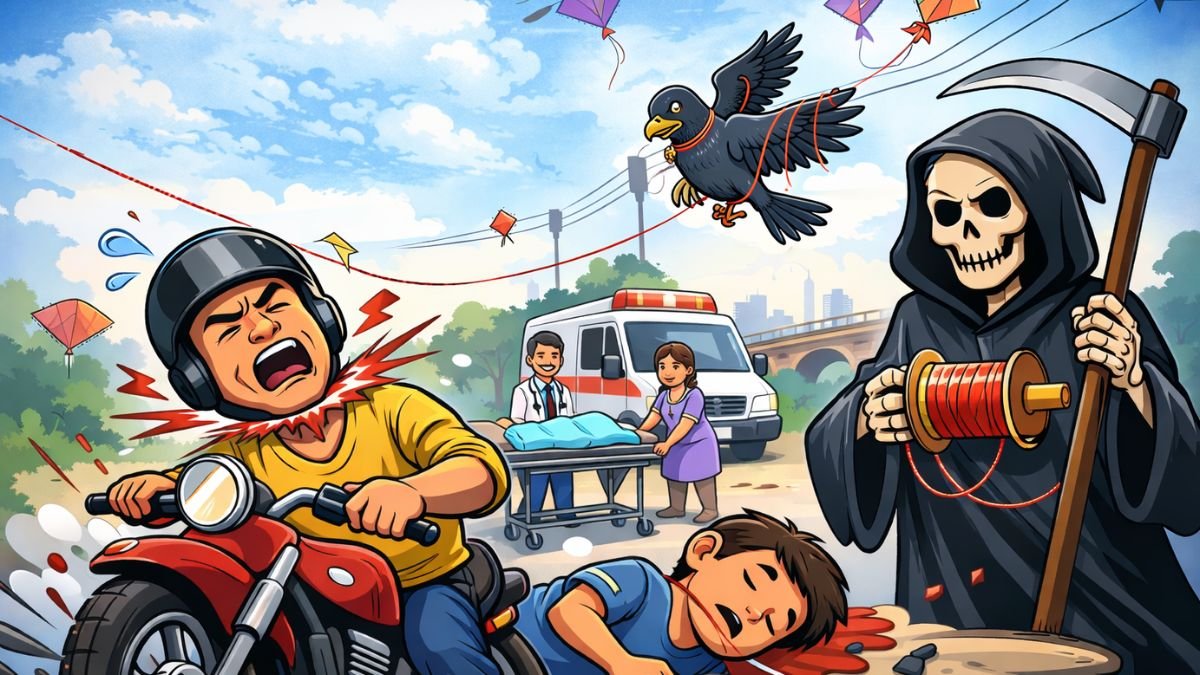 गोरखपुर (29 जुलाई 2025)-अमित गुप्ता अपनी मां के साथ बाइक से धर्मशाला जा रहे थे। सूरजकुंड पुल पर मांझा गर्दन में फंस गया। हेलमेट पहने होने के बावजूद उनकी गर्दन की चार नसें कट गईं। लंबा ऑपरेशन हुआ, तब जाकर जान बच पाई।