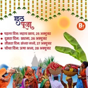 Chhath Puja 2025: लोकआस्था का महापर्व छठ पूजा इस वर्ष भी पूरे श्रद्धा और भक्ति के साथ मनाया जाएगा। यह पर्व सूर्य उपासना और पवित्रता का प्रतीक है, जिसकी शुरुआत ‘नहाय-खाय’ से होती है और समापन ‘ऊषा अर्घ्य’ के साथ होता है। आइए जानते हैं छठ पर्व के चारों दिनों का धार्मिक महत्व और विधि।