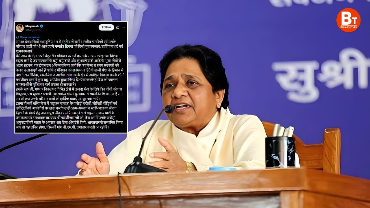 UP: राजधानी लखनऊ सहित पूरे उत्तर प्रदेश में 77वां गणतंत्र दिवस हर्षोल्लास और देशभक्ति के माहौल में मनाया जा रहा है। इस मौके पर बहुजन समाज पार्टी की राष्ट्रीय अध्यक्ष मायावती (Mayawati) ने भी देश और प्रदेश की जनता को शुभकामनाएं दीं। उन्होंने सोशल मीडिया के माध्यम से गणतंत्र दिवस की बधाई देते हुए लोकतांत्रिक मूल्यों के प्रति प्रतिबद्धता दोहराई।