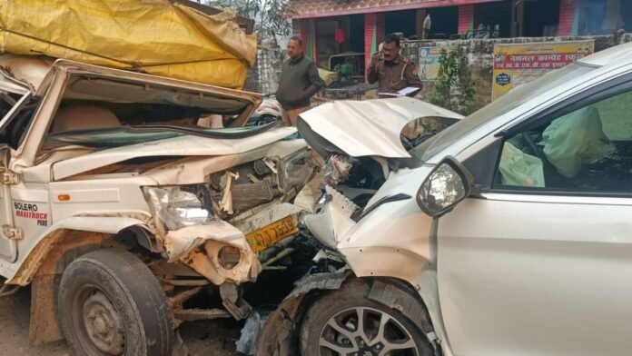 गोंडा जिले के मनकापुर कोतवाली क्षेत्र में गोण्डा-मनकापुर मार्ग स्थित झिलाही बाजार में बुधवार देर रात एक दिल दहला देने वाला हादसा हुआ। बलरामपुर से मुर्गा लादकर आ रही पिकअप और मनकापुर से गोंडा की ओर जा रही अर्टिगा कार के बीच आमने-सामने जबरदस्त भिड़ंत हो गई। टक्कर इतनी भीषण थी कि दोनों वाहन बुरी तरह क्षतिग्रस्त हो गए और मौके पर ही अफरा-तफरी मच गई।