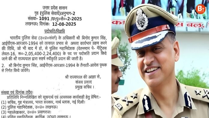 उत्तर प्रदेश में महानिदेशक (DG) स्तर पर खाली पदों को भरने की प्रक्रिया तेज हो गई है। हाल ही में लोकभवन में मुख्य सचिव एस.पी. गोयल (S.P Goyal) की अध्यक्षता में हुई विभागीय पदोन्नति समिति (DPC) की बैठक में बड़ा फैसला लिया गया। इसमें तय हुआ कि 1994 बैच के IPS अधिकारियों को क्रमवार DG पद पर पदोन्नति दी जाएगी। इसी कड़ी में मंगलवार देर शाम 1994 बैच के IPS बिनोद कुमार सिंह (IPS Binod Kumar Singh) को DG बनाया गया। यह पद DG आनंद स्वरूप के केंद्रीय प्रतिनियुक्ति पर जाने के बाद खाली था।