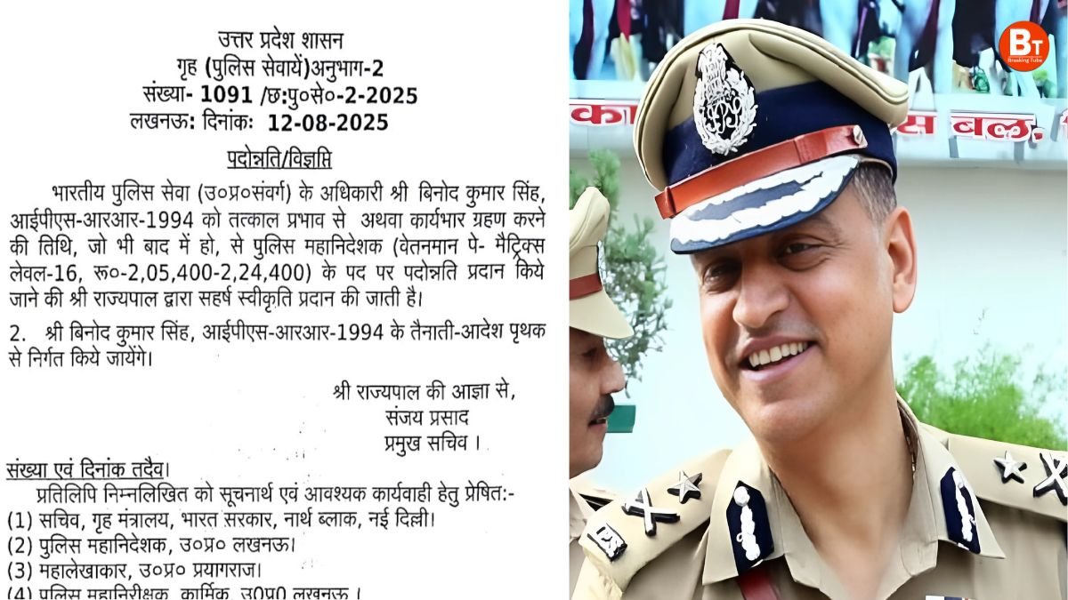 उत्तर प्रदेश में महानिदेशक (DG) स्तर पर खाली पदों को भरने की प्रक्रिया तेज हो गई है। हाल ही में लोकभवन में मुख्य सचिव एस.पी. गोयल (S.P Goyal) की अध्यक्षता में हुई विभागीय पदोन्नति समिति (DPC) की बैठक में बड़ा फैसला लिया गया। इसमें तय हुआ कि 1994 बैच के IPS अधिकारियों को क्रमवार DG पद पर पदोन्नति दी जाएगी। इसी कड़ी में मंगलवार देर शाम 1994 बैच के IPS बिनोद कुमार सिंह (IPS Binod Kumar Singh) को DG बनाया गया। यह पद DG आनंद स्वरूप के केंद्रीय प्रतिनियुक्ति पर जाने के बाद खाली था।