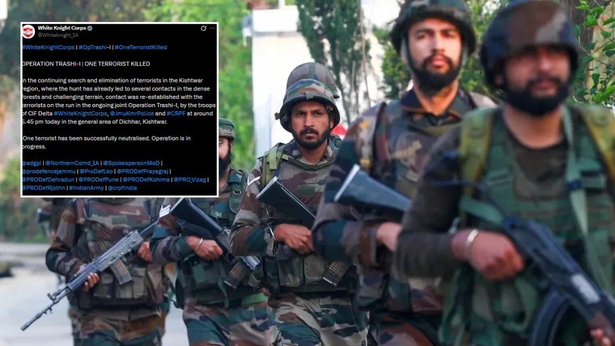 सेना ने बताया कि किश्तवाड़ के विभिन्न हिस्सों में आतंकियों की लगातार खोजबीन की जा रही है। CIF डेल्टा, जम्मू-कश्मीर पुलिस और सीआरपीएफ के जवानों ने मिलकर ‘त्राशी-I’ नामक ऑपरेशन चलाकर आतंकियों को घेरने की कोशिश की। इसी दौरान शाम लगभग 5.45 बजे दिछार क्षेत्र में सुरक्षाबलों और आतंकियों के बीच मुठभेड़ हुई, जिसमें एक आतंकवादी को मार गिराया गया।