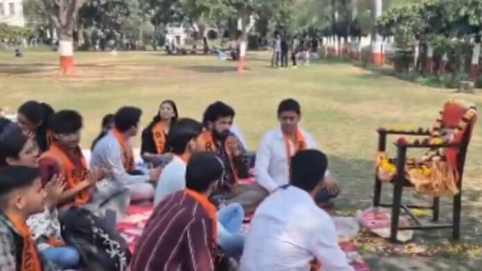 बड़ी संख्या में कार्यकर्ताओं के एकत्र होने के कारण प्रशासन ने यूनिवर्सिटी में सुरक्षा कड़ी कर दी। पुलिस बल तैनात किए गए ताकि किसी भी अप्रिय घटना को रोका जा सके। सुरक्षा कर्मियों ने छात्रों को नियंत्रित करने की कोशिश की, लेकिन छात्रों ने पुलिस की बात नहीं मानी और लाल बारादरी में बैठकर हनुमान चालीसा का पाठ करना शुरू कर दिया।