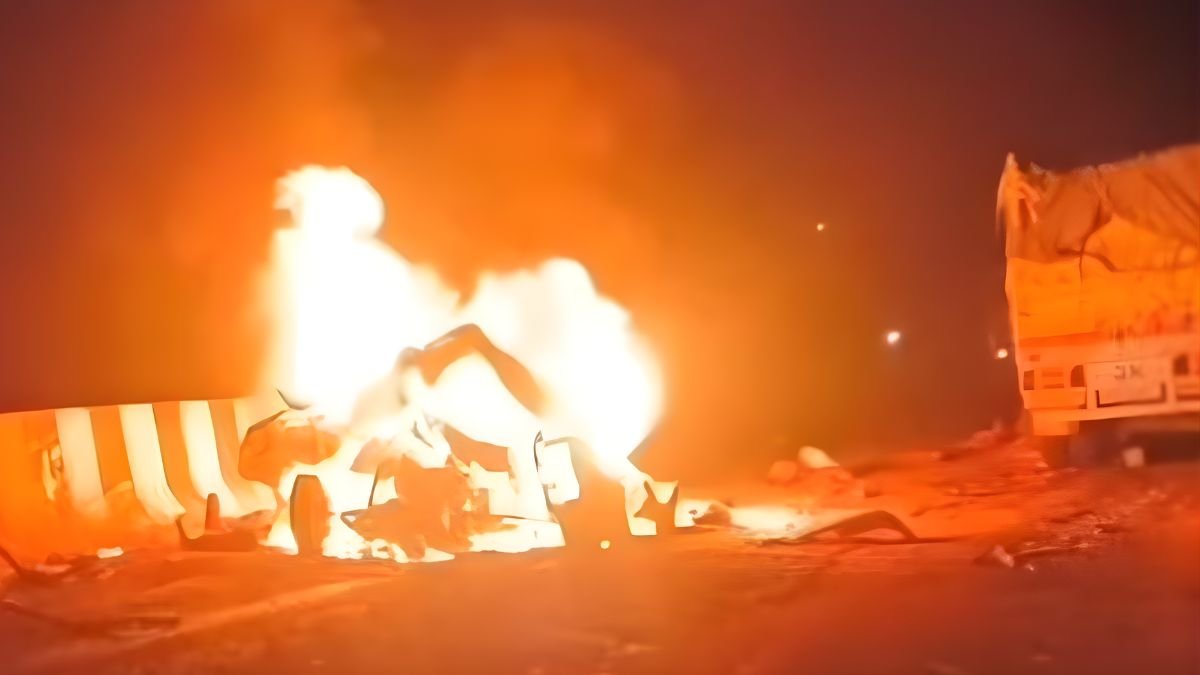 जानकारी के मुताबिक मध्य प्रदेश से चना लेकर आ रहा ट्रक ढलान पर अचानक अनियंत्रित हो गया। उसने आगे चल रही बोलेरो को जोरदार टक्कर मार दी, जिससे वह गिट्टी से भरे एक अन्य ट्रक से जा टकराई। इसी दौरान पीछे से आ रहा एक और ट्रक भी भिड़ गया। टक्कर इतनी भयंकर थी कि बोलेरो में तुरंत आग लग गई और उसमें सवार लोगों को संभलने का मौका तक नहीं मिला।
