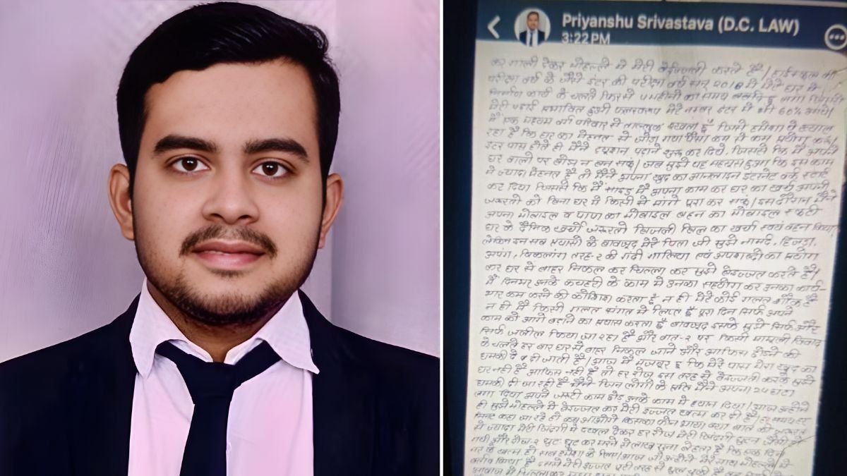 प्रियांशु ने अपने नोट में पेशेवर जीवन से जुड़ी निराशा भी व्यक्त की। उन्होंने बताया कि वह अपने पिता के चैंबर में काम करते थे, लेकिन उनकी खुद की कोई पहचान नहीं बन पा रही थी। उन्होंने लिखा कि उनका न कोई स्वतंत्र कार्यालय था और न ही उन्हें अपने काम का श्रेय मिलता था। इस वजह से वे खुद को लगातार दबाव और घुटन में महसूस कर रहे थे।