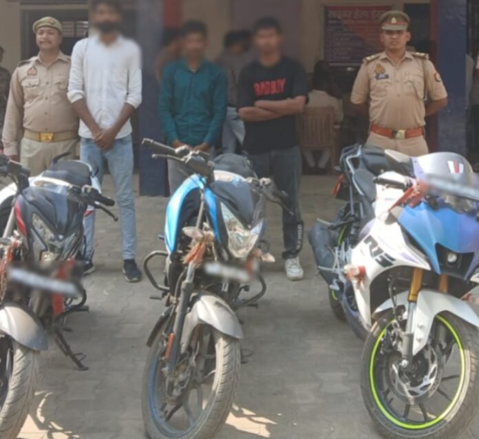 पुलिस के अनुसार, सोमवार को क्षेत्र में नियमित चेकिंग के दौरान मोनू निषाद, विपिन जायसवाल और राजकुमार प्रजापति (सभी निवासी जंगल हरपुर कोइरी टोला, थाना गुलरिहा) को उनकी मोटरसाइकिलों से खतरनाक स्टंट करते हुए पकड़ा गया। इन युवकों के स्टंट से न केवल राहगीरों की जान को खतरा था, बल्कि यह कानून व्यवस्था के लिए भी चुनौती बन रहा था। पुलिस ने तुरंत कार्रवाई करते हुए तीनों को हिरासत में ले लिया और उनकी तीनों मोटरसाइकिलों को सीज कर दिया।