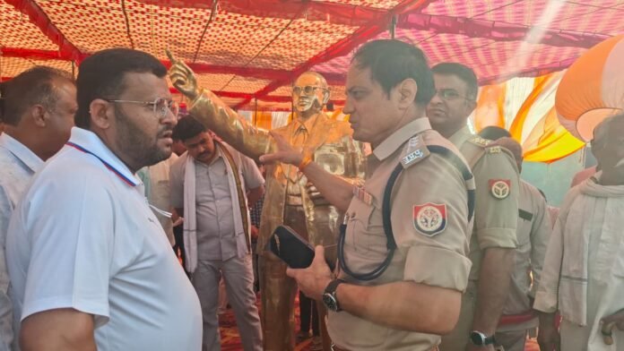 मथुरा : मथुरा जिले के फरह ग्राम महुअन में अम्बेडकर पार्क में बिना प्रशासनिक अनुमति के डॉ. भीमराव अम्बेडकर की प्रतिमा स्थापित करने की तैयारी की सूचना पर क्षेत्राधिकारी रिफाइनरी व थाना प्रभारी छोटे लाल पुलिस बल के साथ मौके पर पहुंचे। अधिकारियों ने आयोजकों को नियमानुसार अनुमति के बाद ही प्रतिमा का अनावरण करने की हिदायत दी।