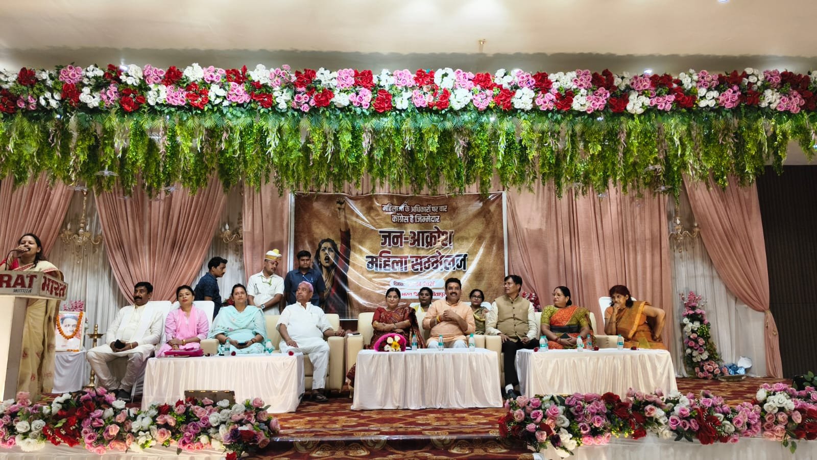 इस दौरन महिला जन आक्रोश सम्मेलन का आयोजन भी किया गया और वहां पर मुख्य अतिथि के रूप में मंत्री रजनी तिवारी ने नारी शक्ति का आवाहन करते हुए कहा कि आज नारी शक्ति में जो उबाल है इसका दोषी भारत का विपक्ष है वह विपक्ष जो लंबे समय तक नारी शक्ति की संवेदनाओं के साथ खिलवाड़ करता रहा है और कभी उनक़ो उनका हक प्राप्त करने नहीं दिया है आज जब भारतीय जनता पार्टी उनके हक की बात कर रही है तब विपक्ष ने लोकसभा में नारी शक्ति के हक पर डाका डालकर उनको मिलने वाले आरक्षण पर रोक लगवाई है नारी शक्ति उन्हें कभी क्षमा नहीं करेगी