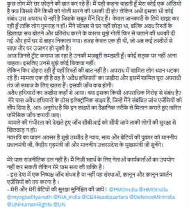 24 सितंबर को भानवी सिंह ने एक और वीडियो जारी कर आरोप लगाया कि राजा भैया के पास बेहद खतरनाक किस्म के हथियार हैं। उन्होंने हथियारों के साथ एक न्यूड लड़की की तस्वीर भी साझा की और लिखा कि शिकायत के बाद उनके चरित्र हनन के लिए पैसा बहाया जा रहा है। भानवी ने सीबीआई या निष्पक्ष एजेंसी से जांच की मांग करते हुए कहा कि,’वैज्ञानिक तरीकों से जांच हो तो 15 दिन में सच सामने आ जाएगा।’