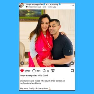 हालांकि, अब प्रतीक यादव ने अपर्णा के साथ तस्वीर साझा कर अपने संदेश में लिखा कि ‘ऑल इज गुड’ और साथ ही इस विवाद पर भी विराम लगा दिया है।