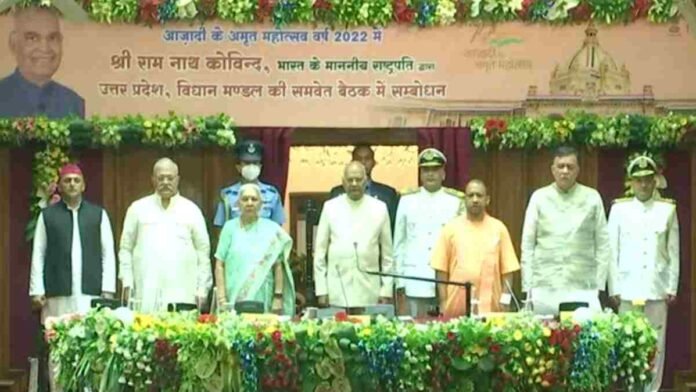 इससे पहले राष्ट्रपति ने अपने सम्बोधन की शुरुआत करते हुए कहा कि विश्व के सबसे विशाल लोकतंत्र, सबसे बड़े राज्य के विधानमण्डल के सदस्यों को इस महत्वपूर्ण सत्र में सम्बोधित करते हुए उन्हें विशेष प्रसन्नता का अनुभव हो रहा है। उन्होंने कहा कि यदि हम यूरोप के तीन महत्वपूर्ण लोकतांत्रित देशों की बात करें। जर्मनी, फ्रांस और यूनाइटेड किंगडम की जनसंख्या को मिलाकर जितनी उनकी कुल आबादी है उतनी अकेले उत्तर प्रदेश की है। उत्तर प्रदेश की सामाजिक, सांस्कृतिक, आर्थिक और भौगोलिक विविधता यहां के लोकतंत्र को और भी समृद्ध और मजबूत बनाती है।
