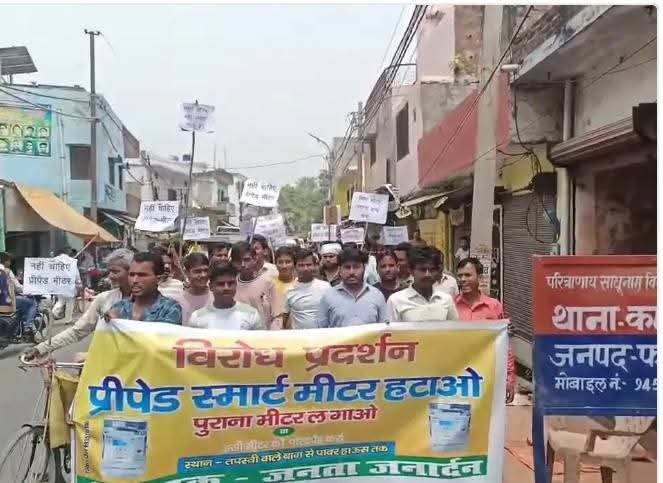 कमालगंज, फर्रुखाबाद : स्मार्ट मीटर लगाने को लेकर लोगों का गुस्सा अब खुलकर सामने आ गया है। बुधवार को कमालगंज क्षेत्र में सैकड़ों उपभोक्ता सड़कों पर उतर आए और स्मार्ट मीटर के खिलाफ जोरदार विरोध प्रदर्शन करते हुए पैदल मार्च निकाला। प्रदर्शन के दौरान पूरे इलाके में “स्मार्ट मीटर वापस लो” और “जबर्दस्ती बंद करो” जैसे नारों की गूंज सुनाई दी।