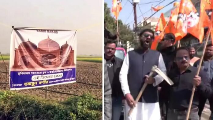 विश्व हिंदू रक्षा परिषद के राष्ट्रीय अध्यक्ष गोपाल राय के नेतृत्व में कार्यकर्ता लखनऊ से रवाना हुए। उनके हाथों में भगवा झंडे के साथ फावड़े और कुल्हाड़ियां थीं। संगठन ने पहले लखनऊ में कई जगह होर्डिंग्स लगवाई थीं, जिनमें लिखा था- “हुमायूं हम आएंगे, बाबरी फिर गिराएंगे”, “इस बार मुर्शिदाबाद में नई बाबरी पर आर-पार होगा”, “चलो मुर्शिदाबाद” और “बंटोगे तो कटोगे” जैसे उत्तेजक नारे। कार्यकर्ताओं ने कहा, “जब एक बार बाबरी मस्जिद का नाम मिट चुका है, तो फिर क्यों उसे जिंदा करके पूरे भारत का माहौल खराब किया जा रहा है। बाबरी मस्जिद की एक भी ईंट नहीं रखने देंगे। जरूरत पड़ी तो मुर्शिदाबाद में कब्र खोदने का काम करेंगे।”