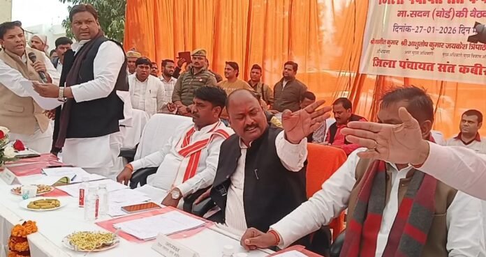 संतकबीरनगर जनपद के जिला पंचायत कार्यालय परिसर में मंगलवार को आयोजित जिला पंचायत बोर्ड की बैठक उस समय हंगामेदार हो गई, जब मेंहदावल क्षेत्र के नारायणपुर में एक ही स्थान पर संचालित दो पशु बाजारों का मुद्दा सदन में उठा। वार्ड सदस्यों और बोर्ड पदाधिकारियों के बीच काफी देर तक तीखी बहस व नोकझोंक हुई। हालात को संभालने के लिए सांसद लक्ष्मीकान्त उर्फ पप्पू निषाद तथा सीडीओ जयकेश त्रिपाठी को हस्तक्षेप करना पड़ा। अंततः शासनादेश के अनुरूप केवल अधिकृत लाइसेंसधारी पशु बाजार के संचालन पर सहमति बनी। वहीं, हंगामे के दौरान सदन ने वित्तीय वर्ष 2026-27 के लिए ₹42 करोड़ 24 लाख 20 हजार के मूल बजट तथा चालू वित्तीय वर्ष 2025-26 के लिए ₹61 करोड़ 22 लाख 51 हजार 746 रुपये के पुनरीक्षित बजट को सर्वसम्मति से मंजूरी दी। साथ ही वार्षिक कार्ययोजना 2026-27 को भी स्वीकृति प्रदान की गई।
