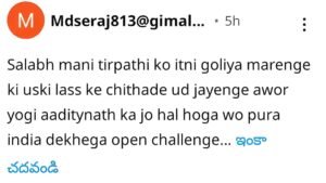 देवरिया जिले में रेलवे ओवरब्रिज के नीचे स्थित अब्दुल शाह गनी मजार के भूमि विवाद को लेकर सियासत और प्रशासनिक हलकों में हलचल तेज हो गई है। इस मामले को उठाने के बाद देवरिया सदर से बीजेपी विधायक डॉ. शलभ मणि त्रिपाठी को सोशल मीडिया पर जान से मारने की धमकियां मिलने लगीं। इससे पहले भी उन्हें Mdseraj813@gmail.com नामक ई-मेल आईडी से एक धमकी भरा संदेश भेजा गया था, जिसमें विधायक के साथ-साथ मुख्यमंत्री को भी खुलेआम गोली मारने की बात लिखी गई थी। इस धमकी के सामने आने के बाद पूरे प्रकरण ने गंभीर रूप ले लिया है।