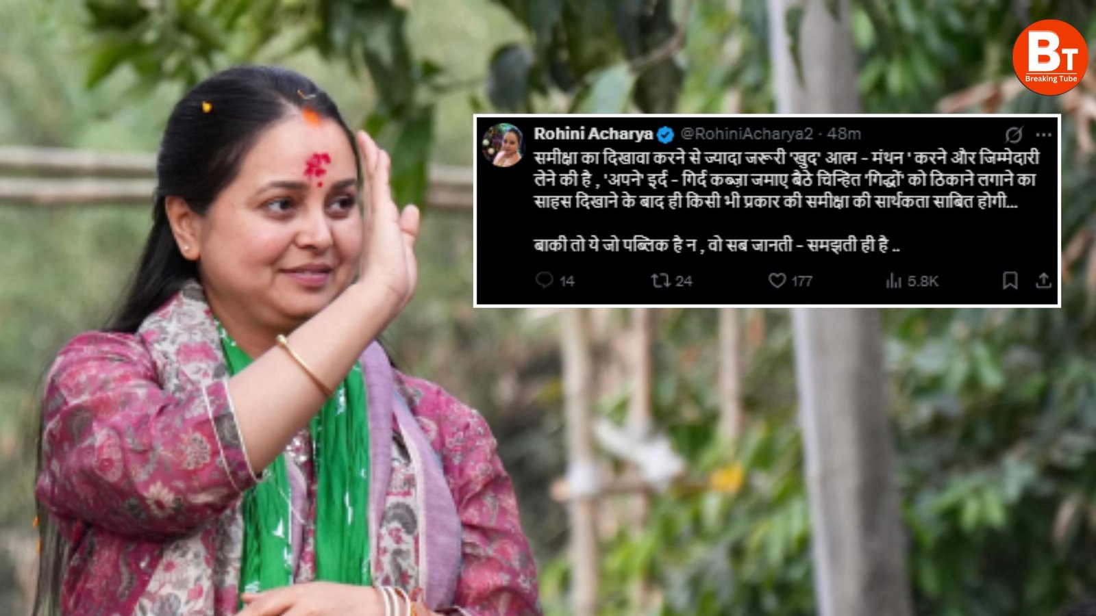 रोहिणी आचार्य ने सोशल मीडिया एक्स पर पोस्ट कर लिखा, ‘समीक्षा का दिखावा करने से ज्यादा जरूरी ‘खुद’ आत्म – मंथन ‘ करने और जिम्मेदारी लेने की है , ‘अपने’ इर्द – गिर्द कब्ज़ा जमाए बैठे चिन्हित ‘गिद्धों’ को ठिकाने लगाने का साहस दिखाने के बाद ही किसी भी प्रकार की समीक्षा की सार्थकता साबित होगी. बाकी तो ये जो पब्लिक है न , वो सब जानती-समझती ही है।
