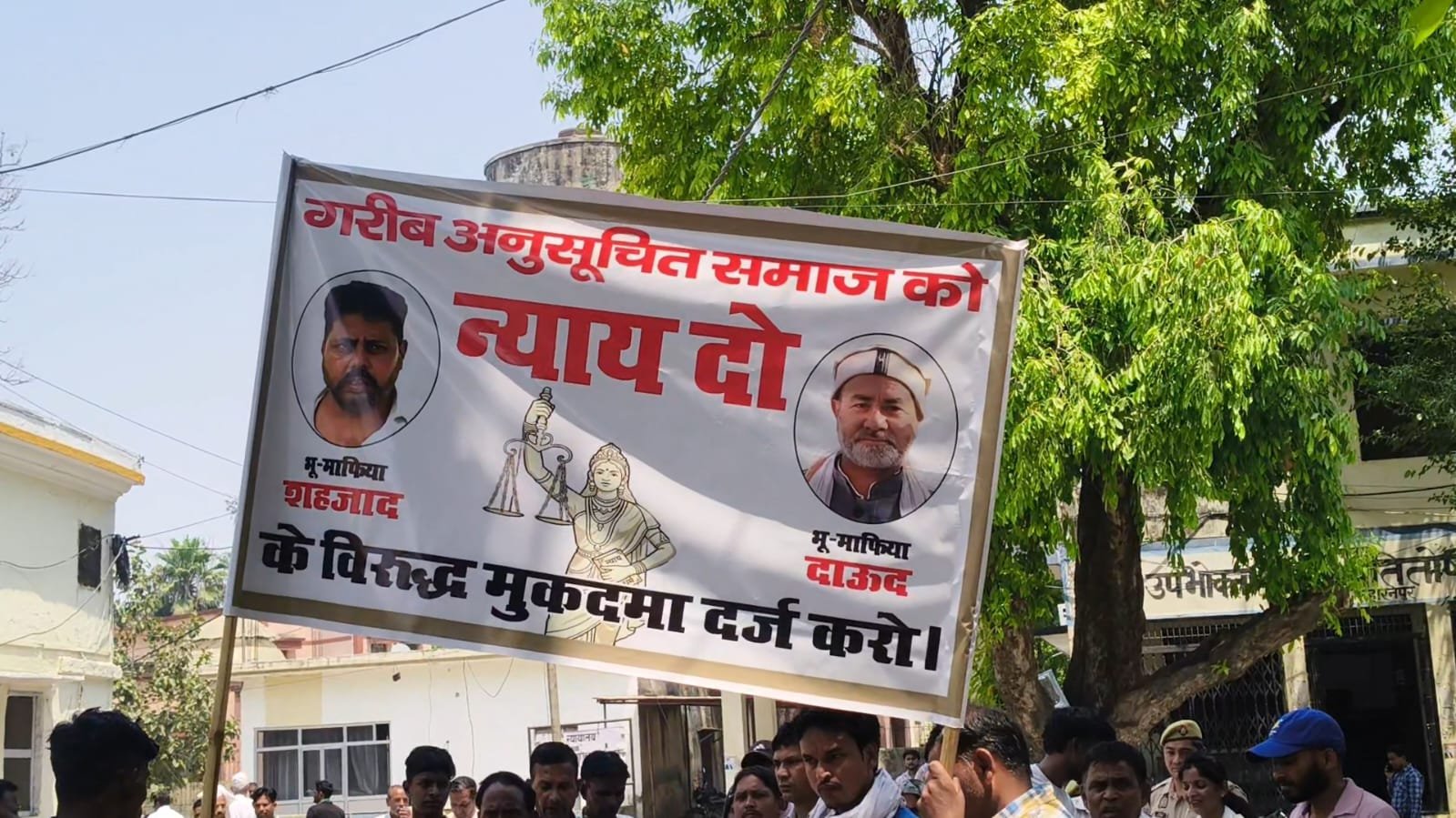 आरोप है कि 10 अप्रैल 2026 को शहजाद और दाऊद सहित अन्य लोगों ने 20-25 मजदूरों के साथ मिलकर पावर आरी से करीब 800 पेड़ काट दिए। विरोध करने पर पीड़ितों को जातिसूचक शब्दों से अपमानित किया गया और जान से मारने की धमकी दी गई। घटना के बाद ग्रामीणों ने अनोखा विरोध प्रदर्शन करते हुए आरोपित भू-माफियाओं के फोटो लगे बैनर तैयार किए और कलेक्ट्रेट पहुंचकर जोरदार प्रदर्शन किया।