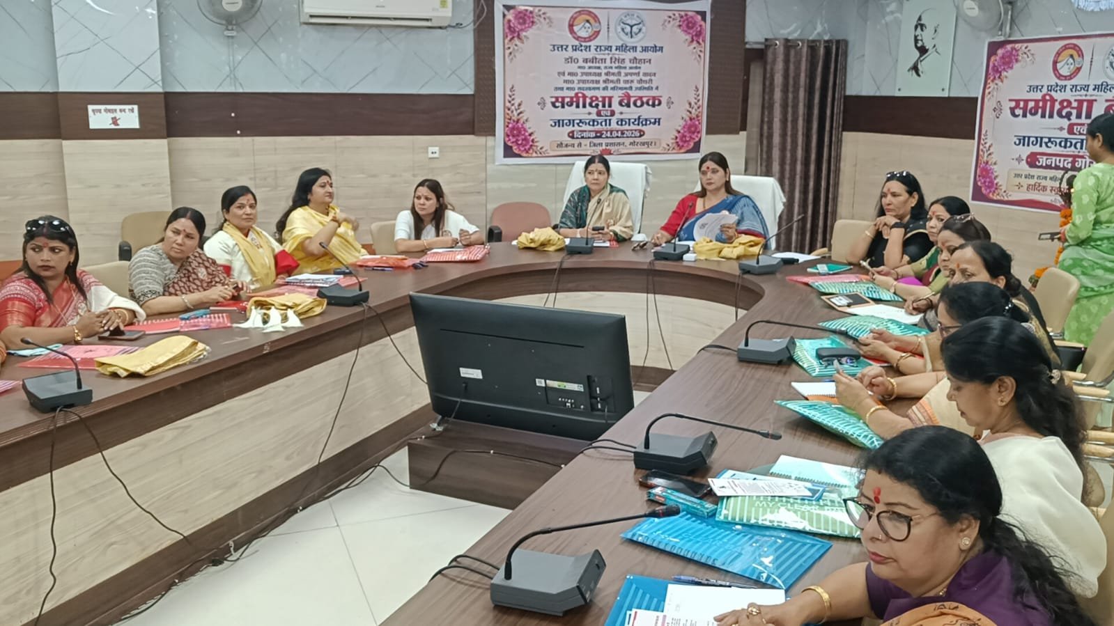 गोरखपुर। विकास भवन सभागार में शुक्रवार को उत्तर प्रदेश राज्य महिला आयोग की अध्यक्ष डॉ. बबीता सिंह चौहान, उपाध्यक्ष अपर्णा यादव एवं चारू चौधरी समेत आयोग की सदस्यगणों की उपस्थिति में समीक्षा बैठक और जागरूकता कार्यक्रम आयोजित किया गया। कार्यक्रम के दौरान महिला सुरक्षा, सशक्तिकरण, कृत्रिम बुद्धिमत्ता (AI) के सुरक्षित व सकारात्मक उपयोग तथा मानव तस्करी निरोधक विषयों पर विशेष सत्र आयोजित किए गए। इसमें अधिकारियों, कर्मचारियों और आमजन को विस्तृत जानकारी दी गई। साथ ही जनपद में महिलाओं से संबंधित योजनाओं, शिकायतों के निस्तारण, सुरक्षा व्यवस्था और विभिन्न विभागों के कार्यों की समीक्षा की गई।